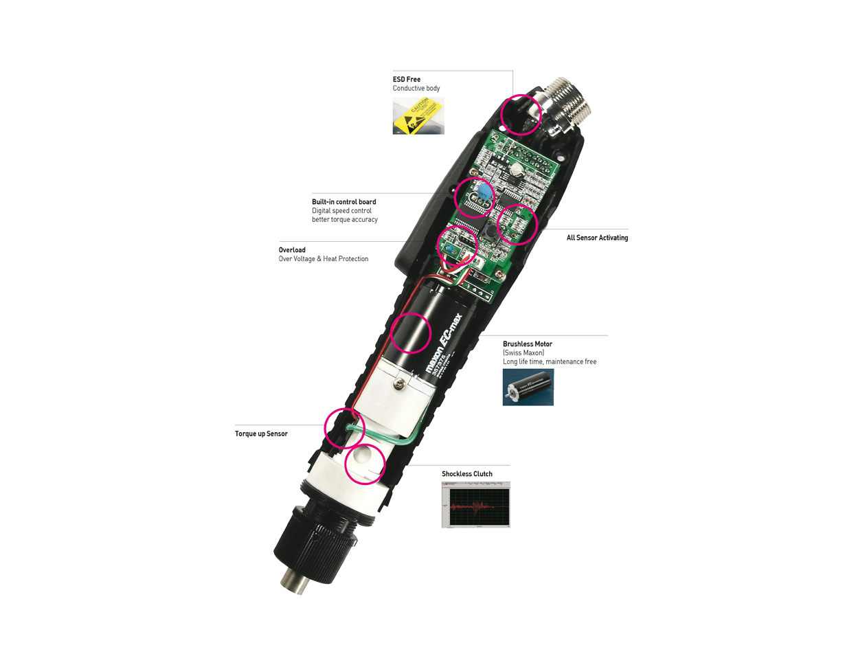 - GX ESD shut-off brushless electric screwdriver 0,02 to 1,2 Nm