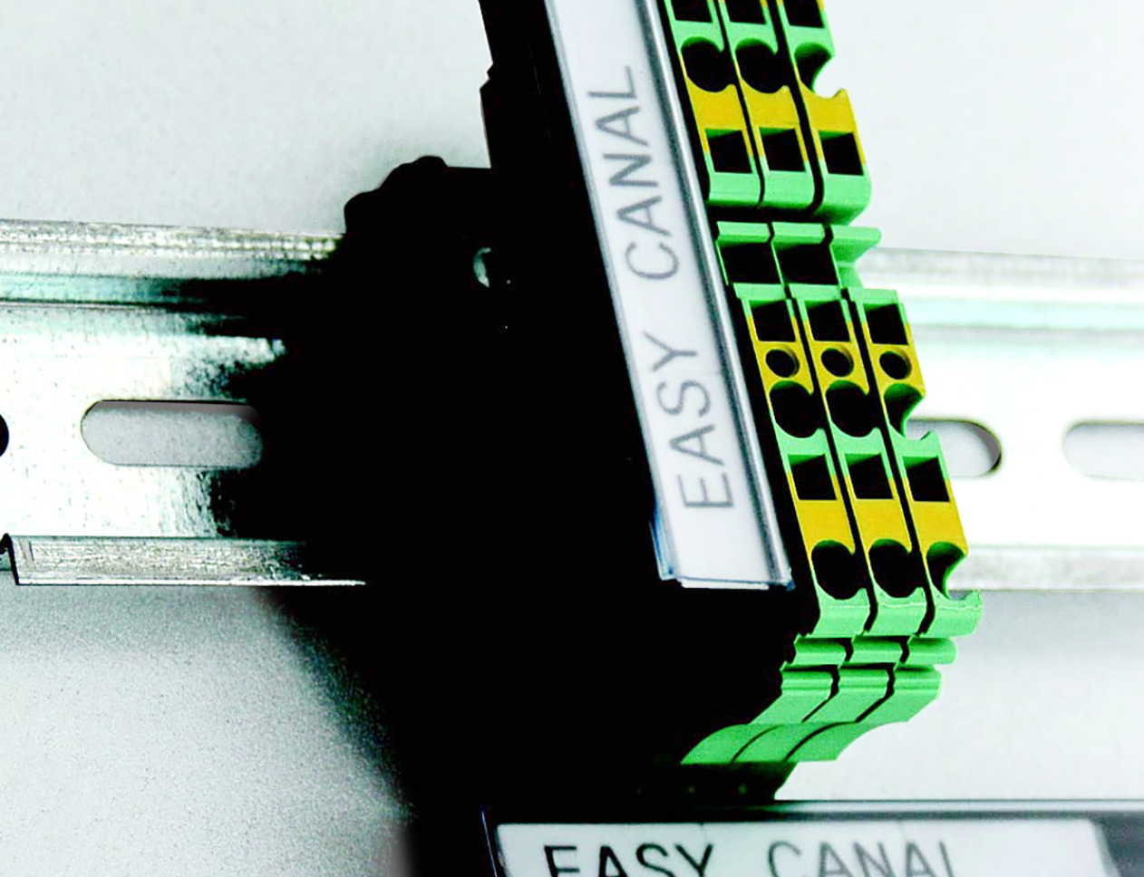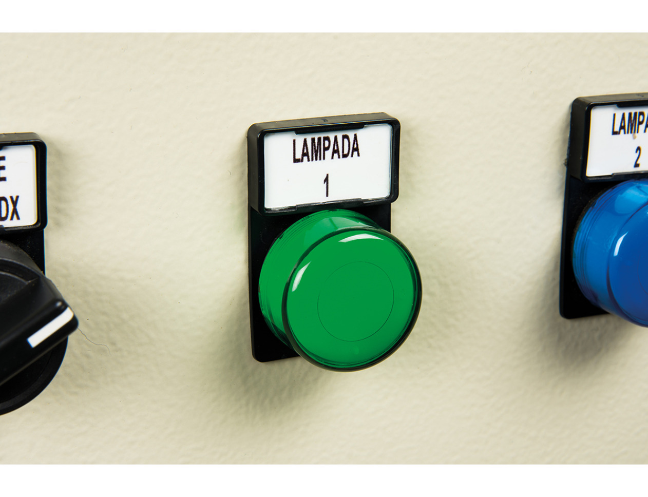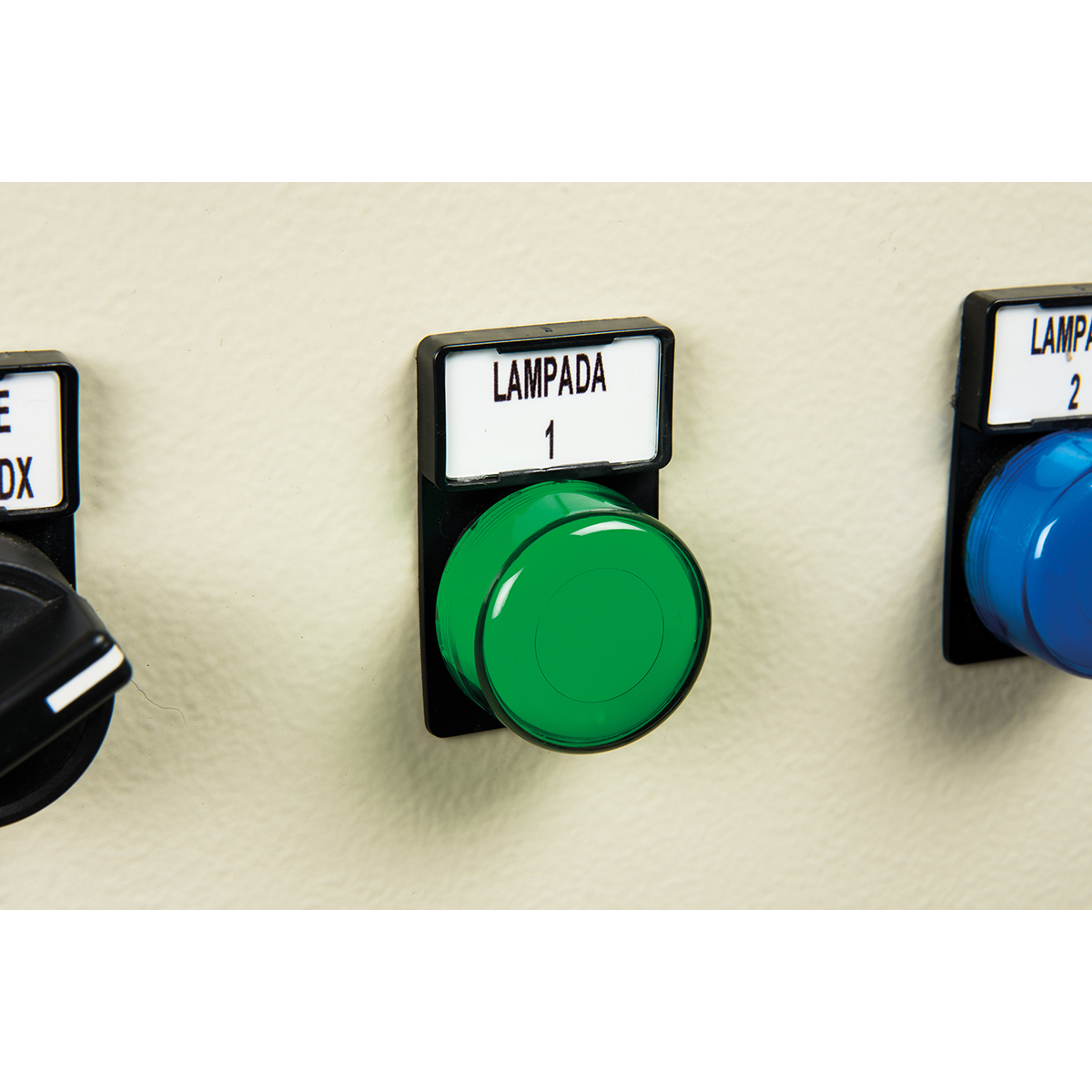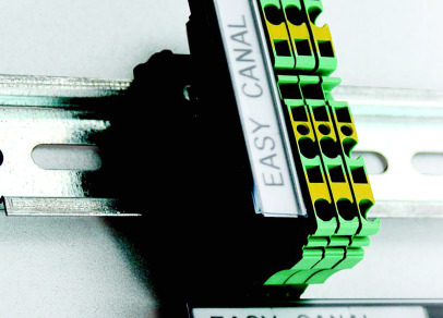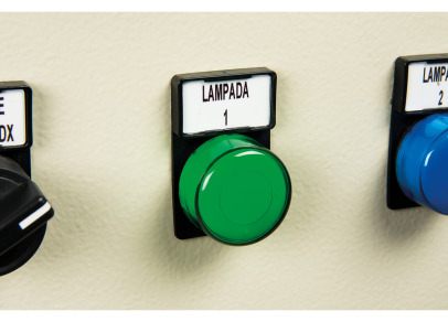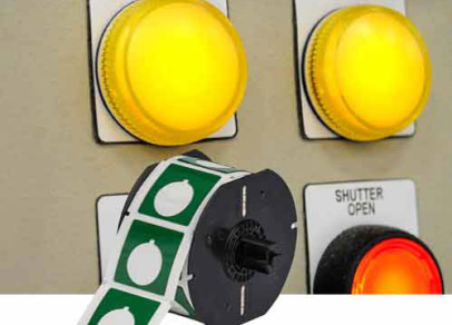 Bėgelių ir mygtukų etiketės, skirtos elektrinių valdymo pultų identifikavimui naudojant BSP41 laidų ir skydų identifikavimo spausdinimo sistemą.